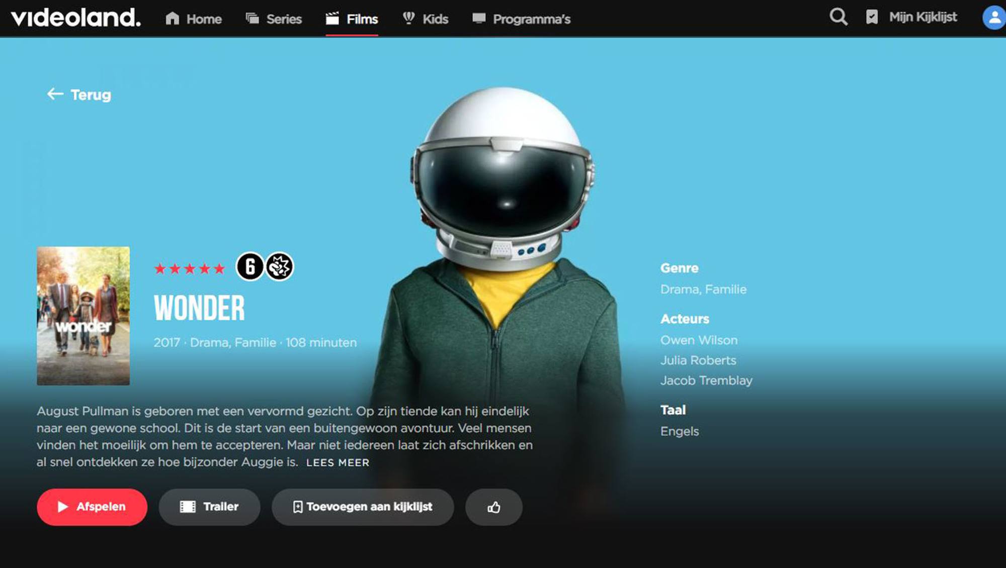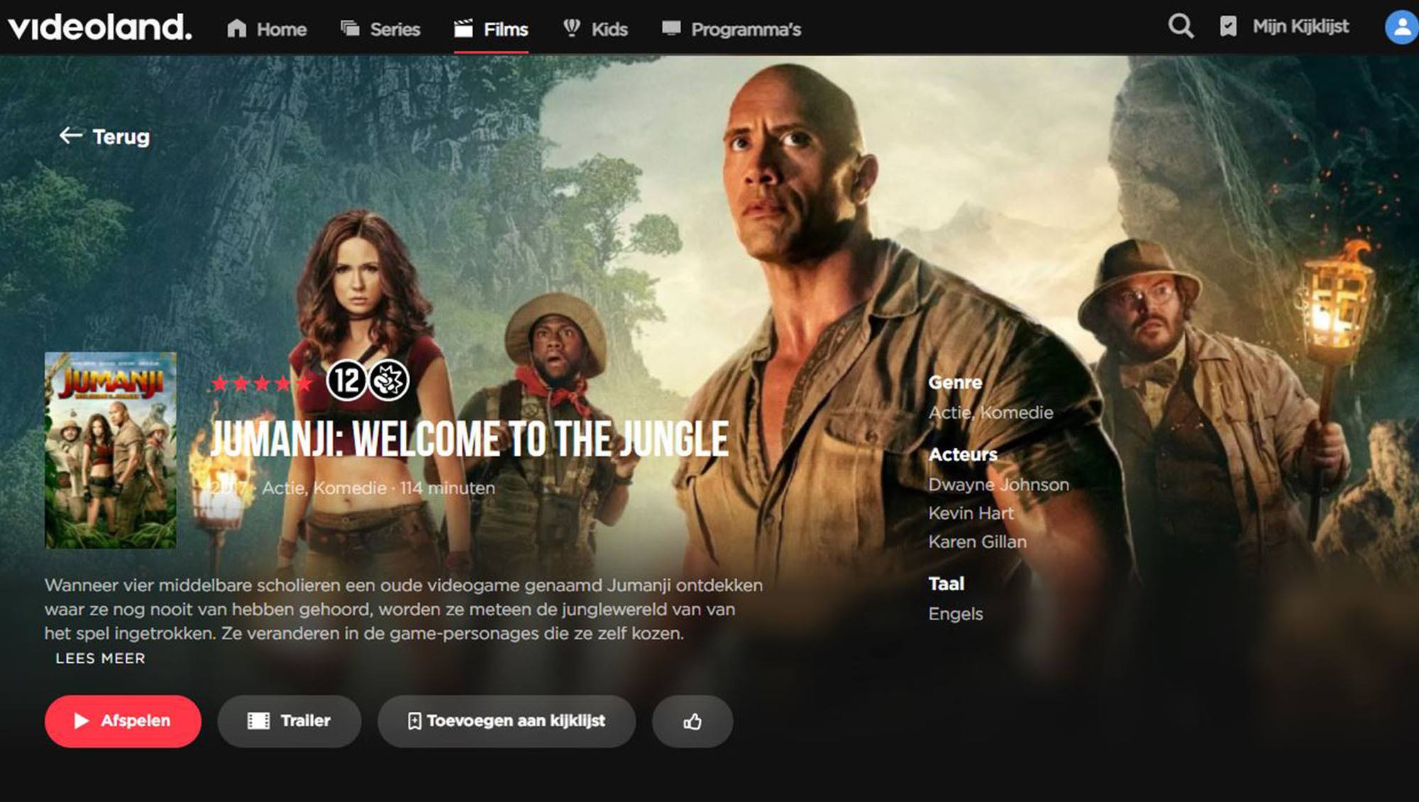 Videoland is een online videodienst met een groot en gevarieerd aanbod in series en films. Het is een Nederlandse dienst, met titels uit binnen- en buitenland. Het aanbod is enorm en er is voor ieder wat wils. Zo kijk je bijvoorbeeld naar komedie, drama, horror en films voor kids. Daarnaast wordt het aanbod wekelijks aangevuld met nieuwe titels. Zo raak je nooit uitgekeken.